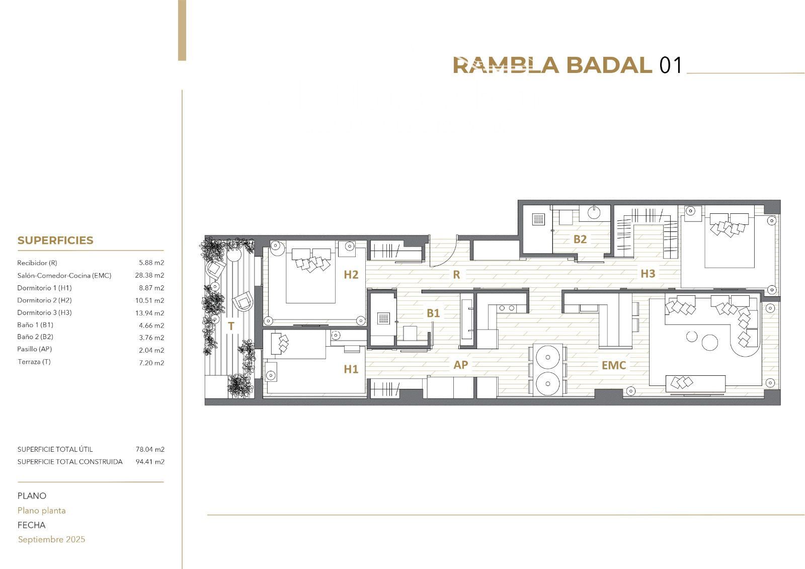Flat for sale in Barcelona, with 1,023 ft2, 3 rooms and 2 bathrooms and Air conditioning.