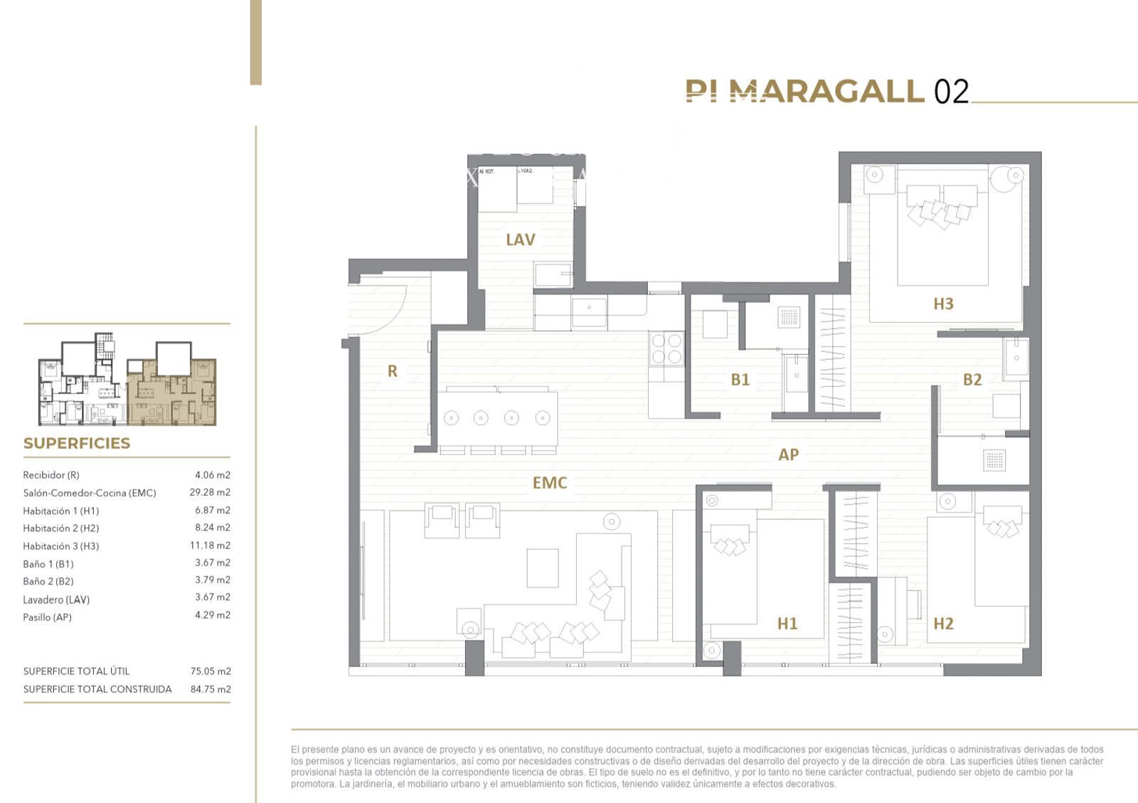 Flat for sale in Barcelona, with 893 ft2, 3 rooms and 2 bathrooms, Lift, Furnished and Air conditioning.