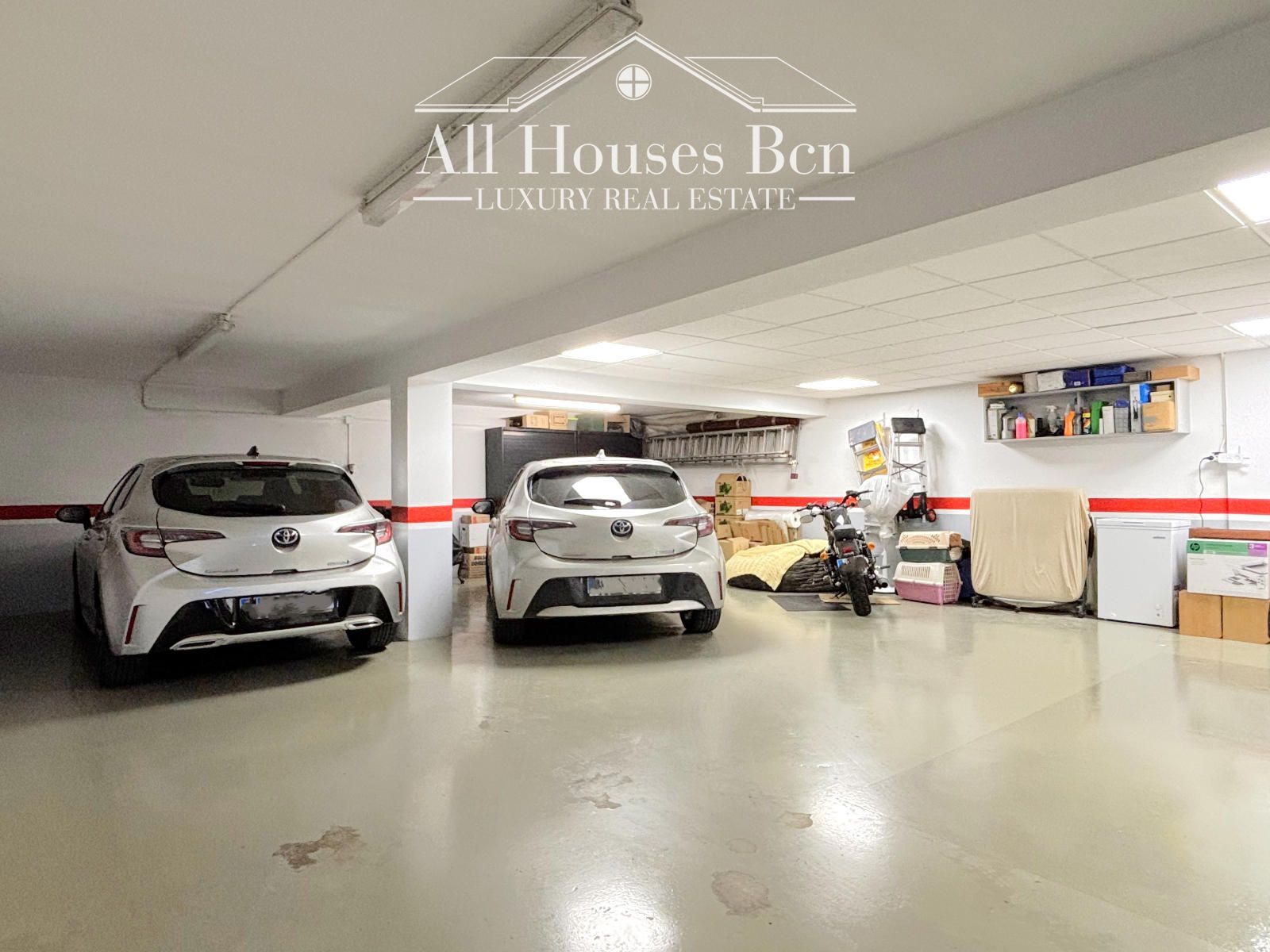 En cuanto al aparcamiento, la casa cuenta con espacio para tres vehículos grandes, con acceso directo desde la calle y un ascensor que conecta directamente con la vivienda. En esta misma planta, se encuentra un apartamento semi-sótano independiente, tipo loft, que puede servir como alojamiento adicional o estudio.