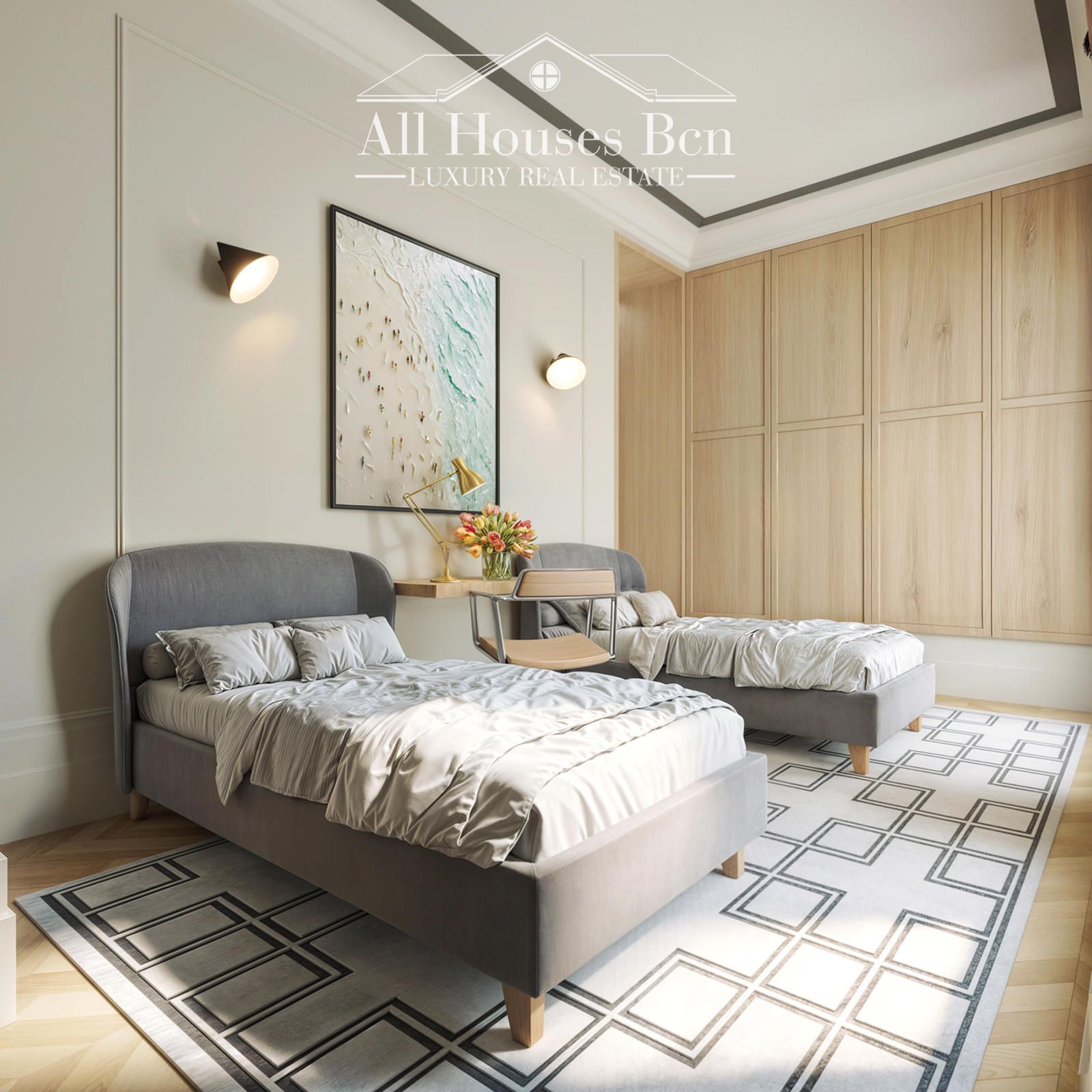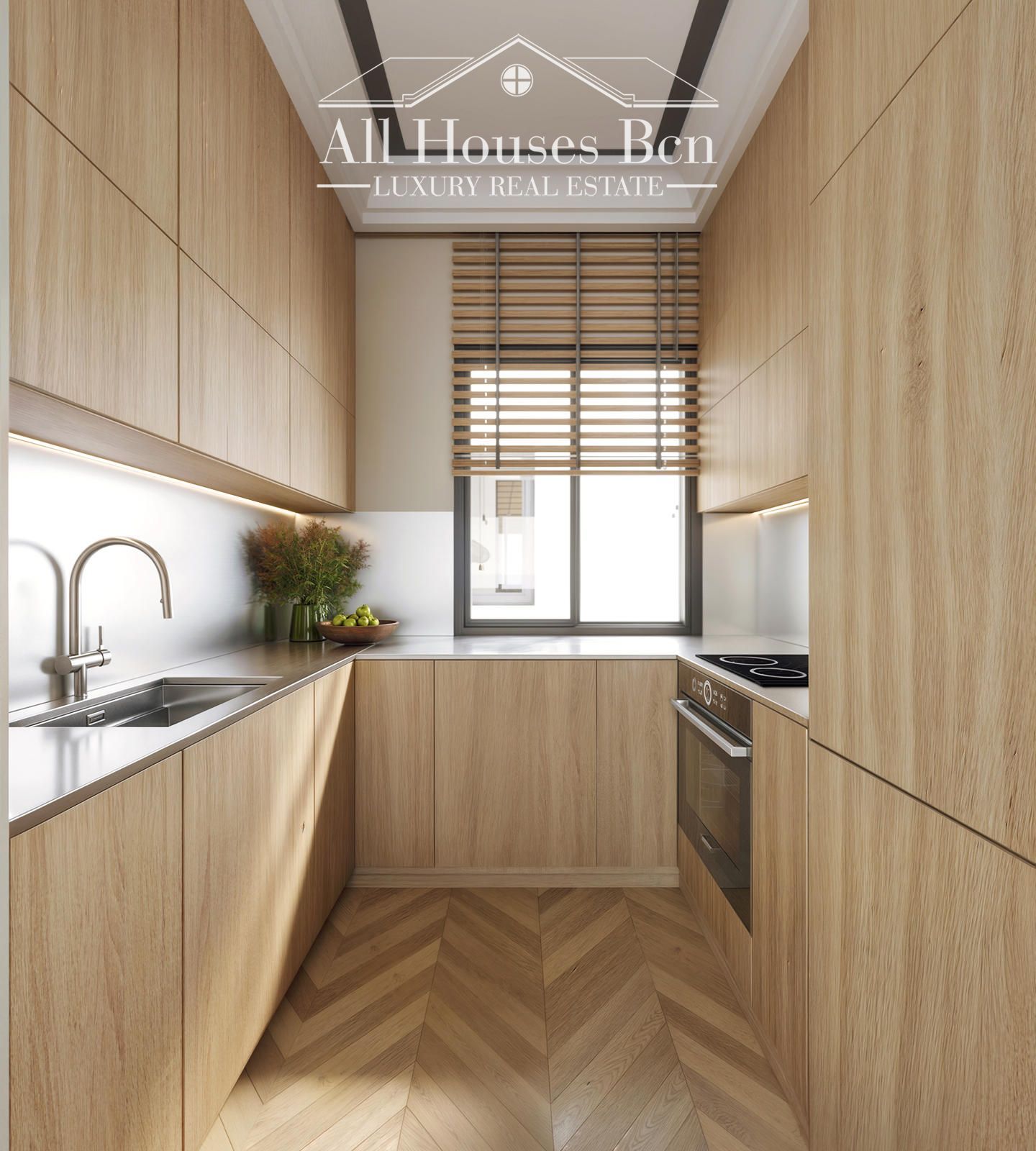 Los suelos de parquet de roble natural en espiga, presentes en toda la vivienda, refuerzan la sensación de calidez y continuidad.