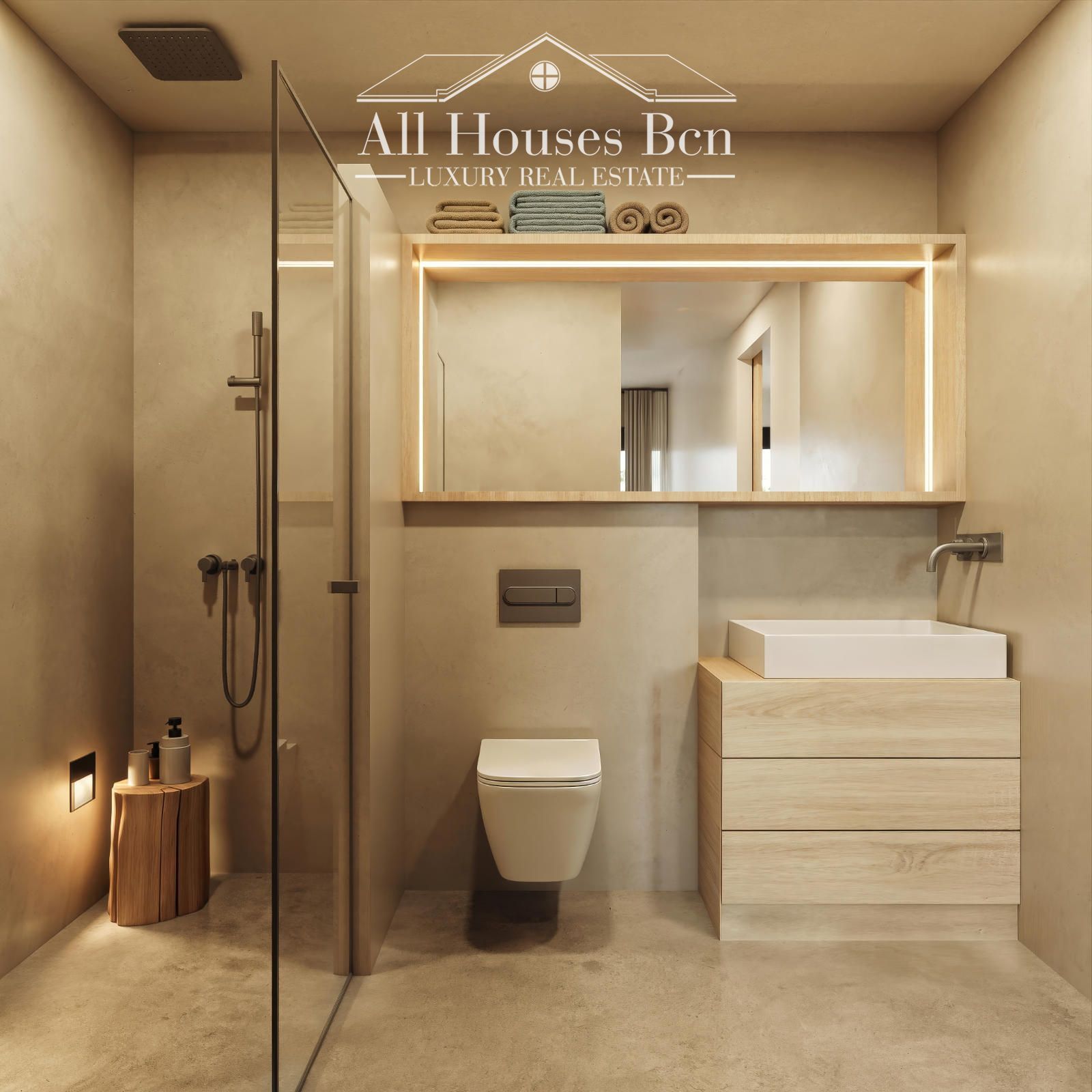 Los baños están acabados en microcemento, tanto las paredes como en suelos, con grifería empotrada y sanitarios suspendidos. Asimismo los suelos de todo el inmueble están revestidos también con microcemento.