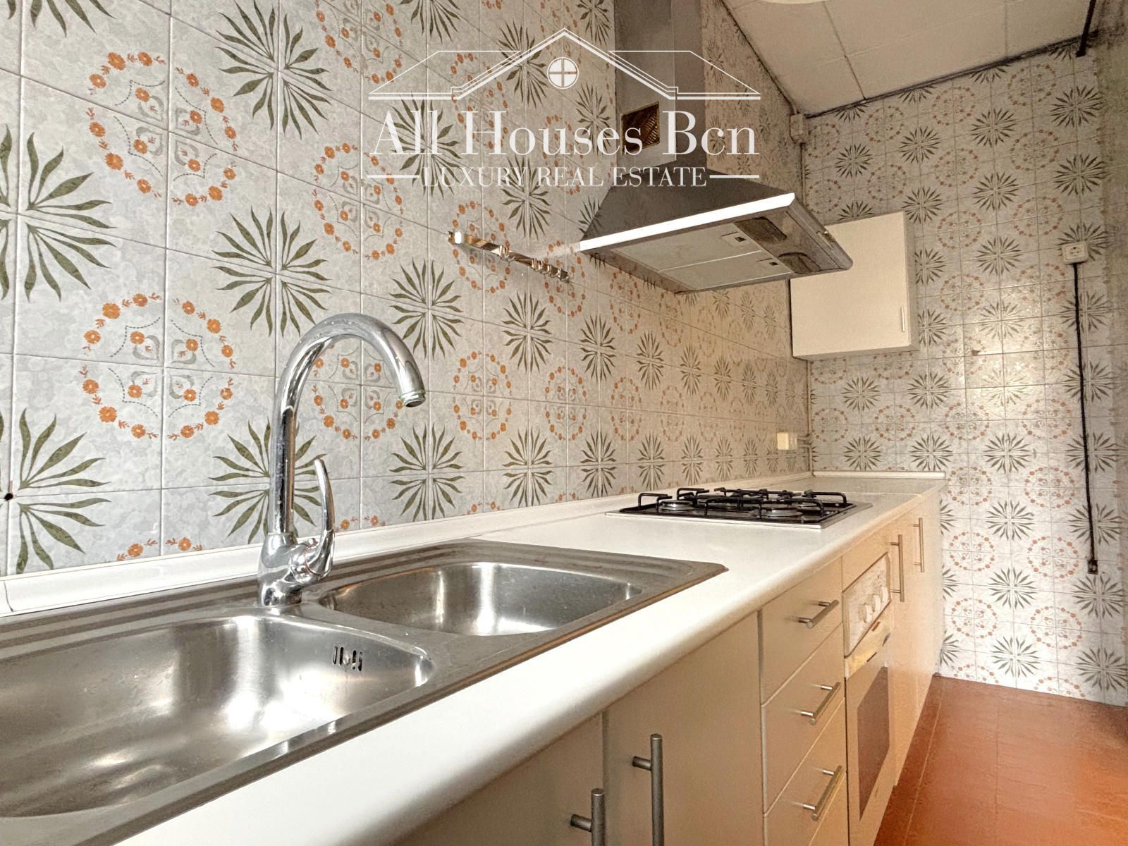La cocina, también en la parte posterior, recibe abundante luz natural gracias a una ventana orientada al mismo patio, ofreciendo unas vistas despejadas y agradables.